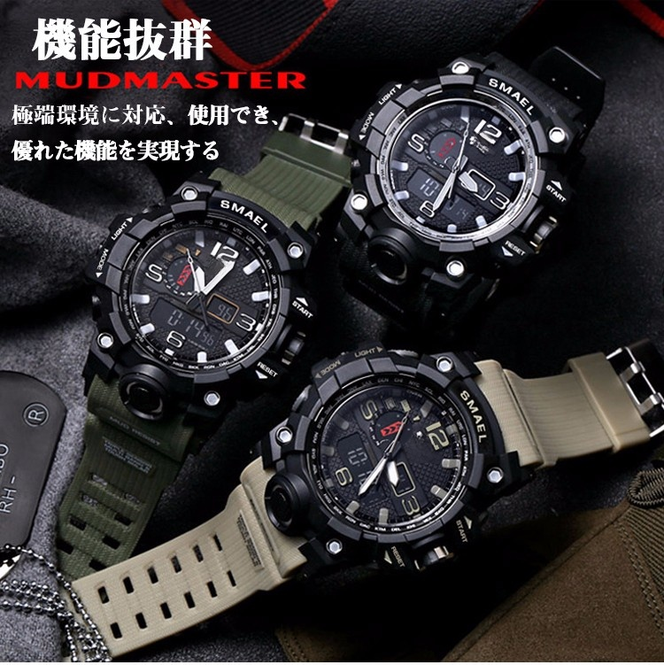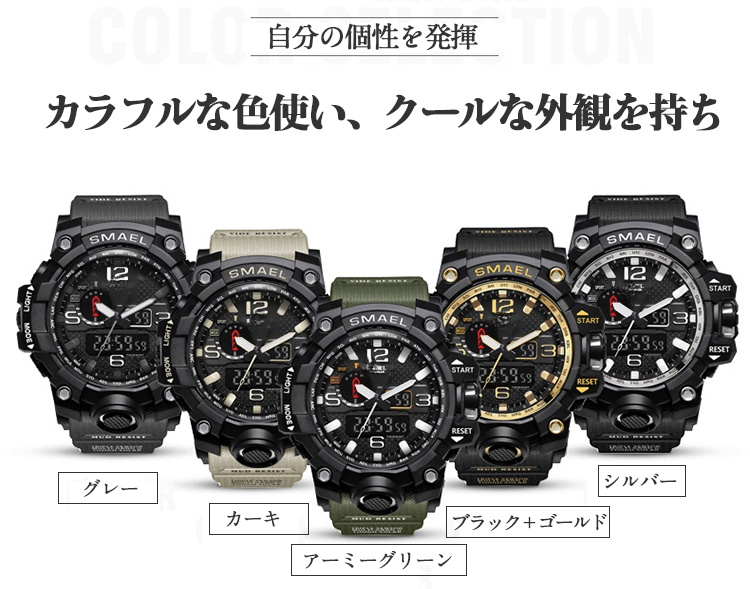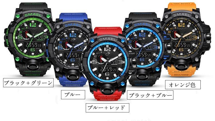 電子時計 機能抜群 昼間・夜間LEDモデル 50メートル防水 10color